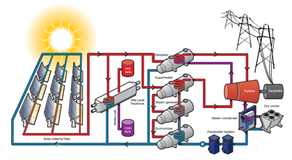 Thanks to recent acquisitions, Alfa Laval can also supply other vital equipment to CSP plants, including a variety of heat exchangers, condensers and dry coolers.